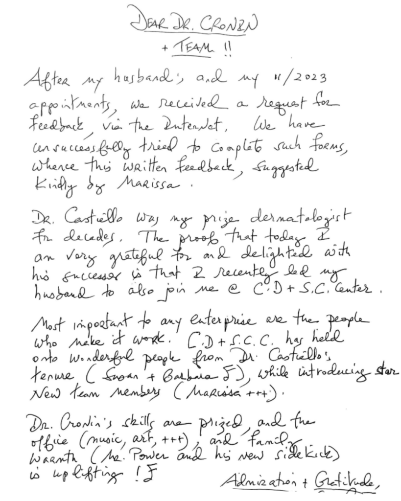 So how exactly does Cronin Dermatology treat patients like family?